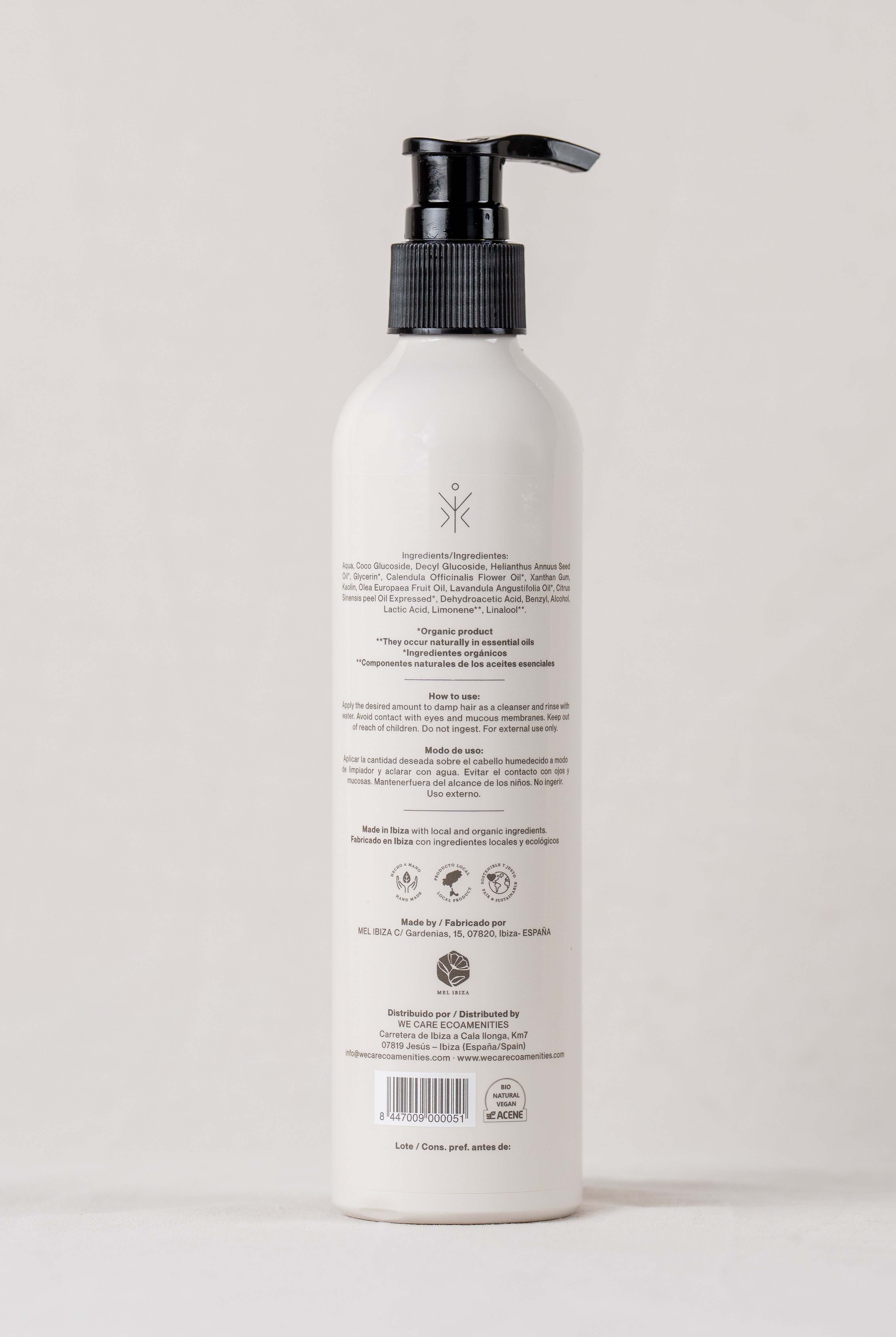 Nuestro Gel Corporal hidrata profundamente, suaviza y calma la piel gracias a la lavanda, la caléndula y el aceite de oliva, mientras que el Champú + Acondicionador revitaliza tu cabello, dejándolo suave, brillante y lleno de volumen, con la suavidad que proporciona la glicerina. . y el extracto de caléndula.