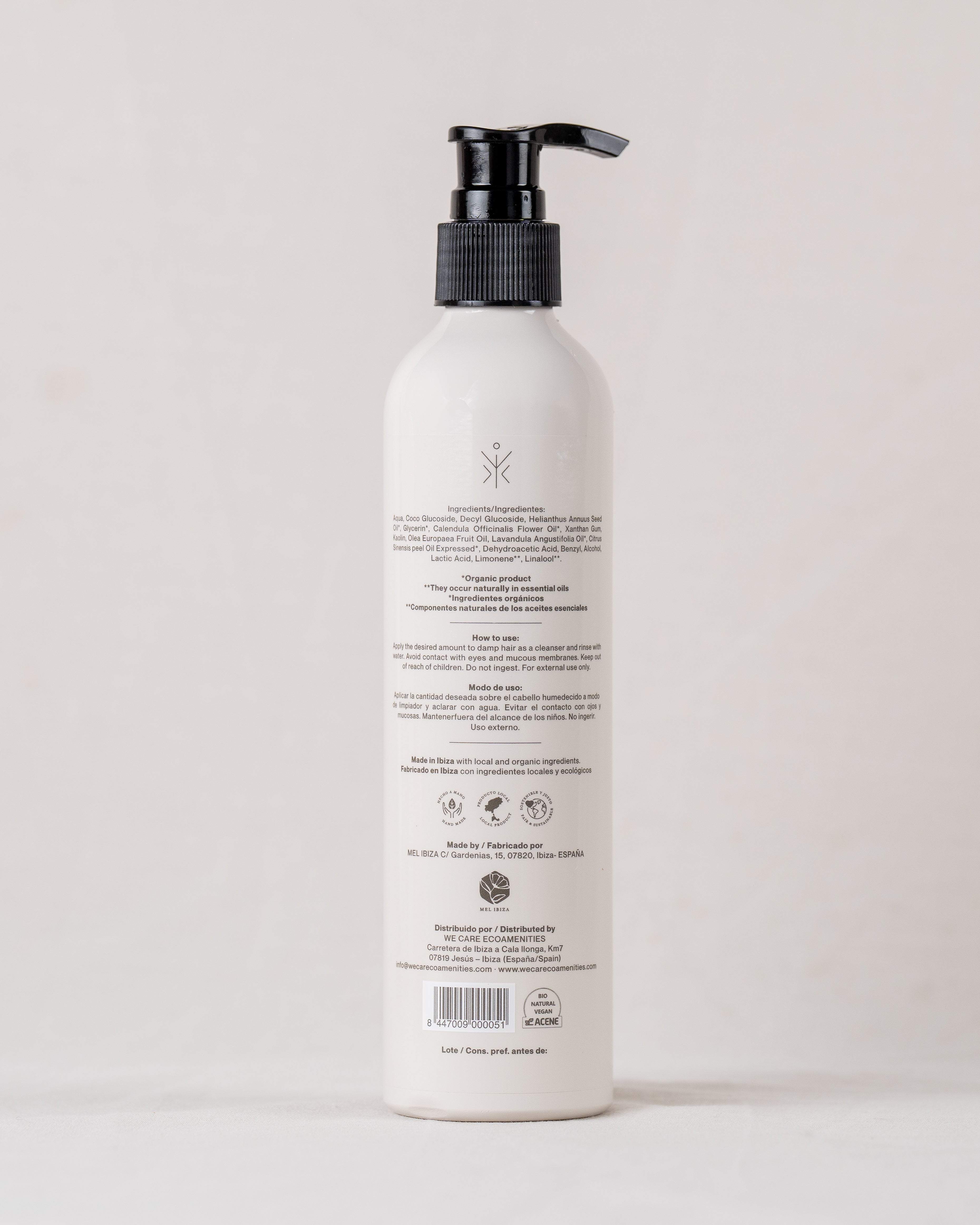 100% ingredientes naturales | 11,4% de ingredientes ecológicos I Producido artesanalmente en Ibiza | Suave y revitalizante | Apto para veganos | Apto para todo tipo de cabello I 300 ml