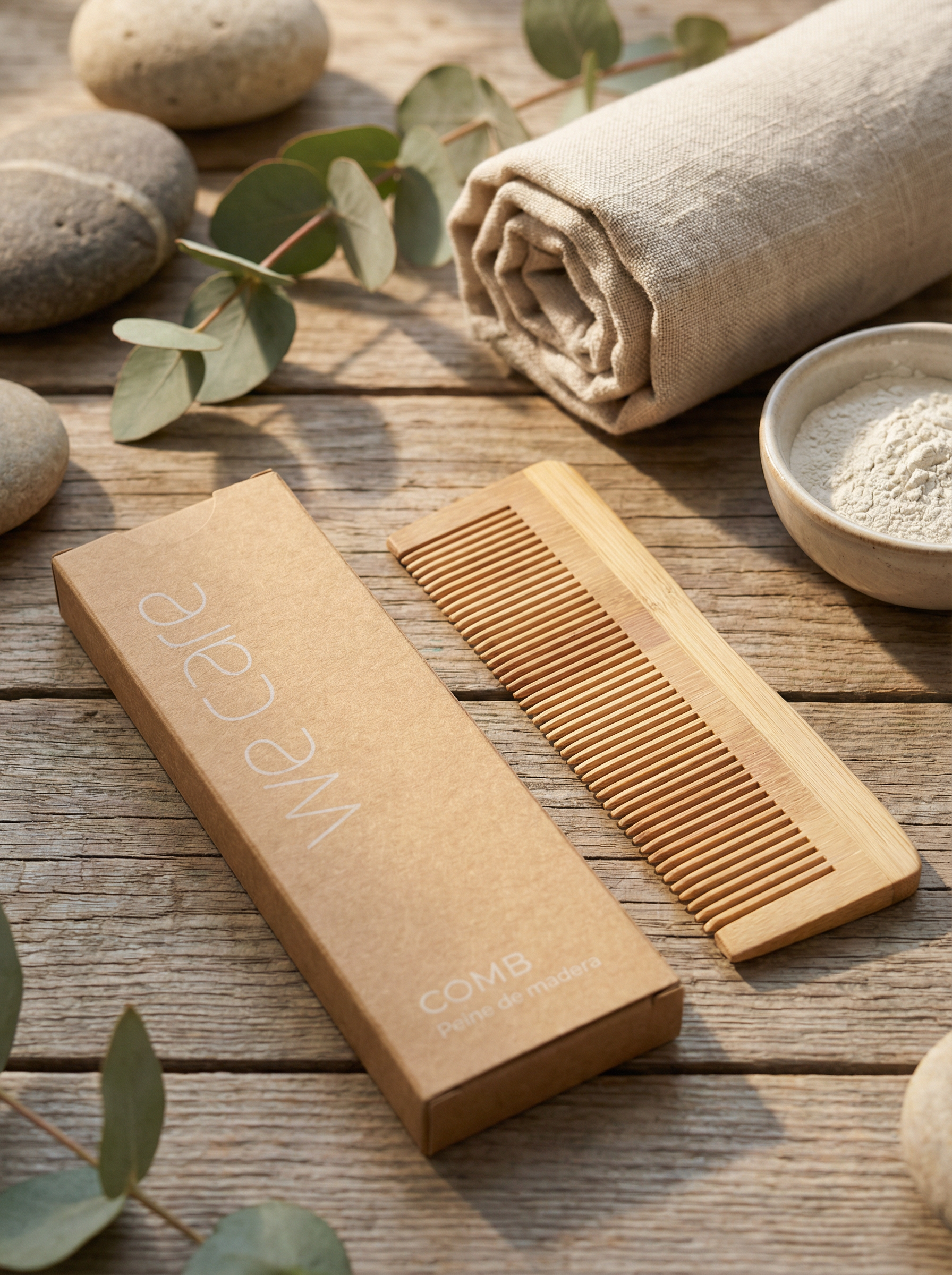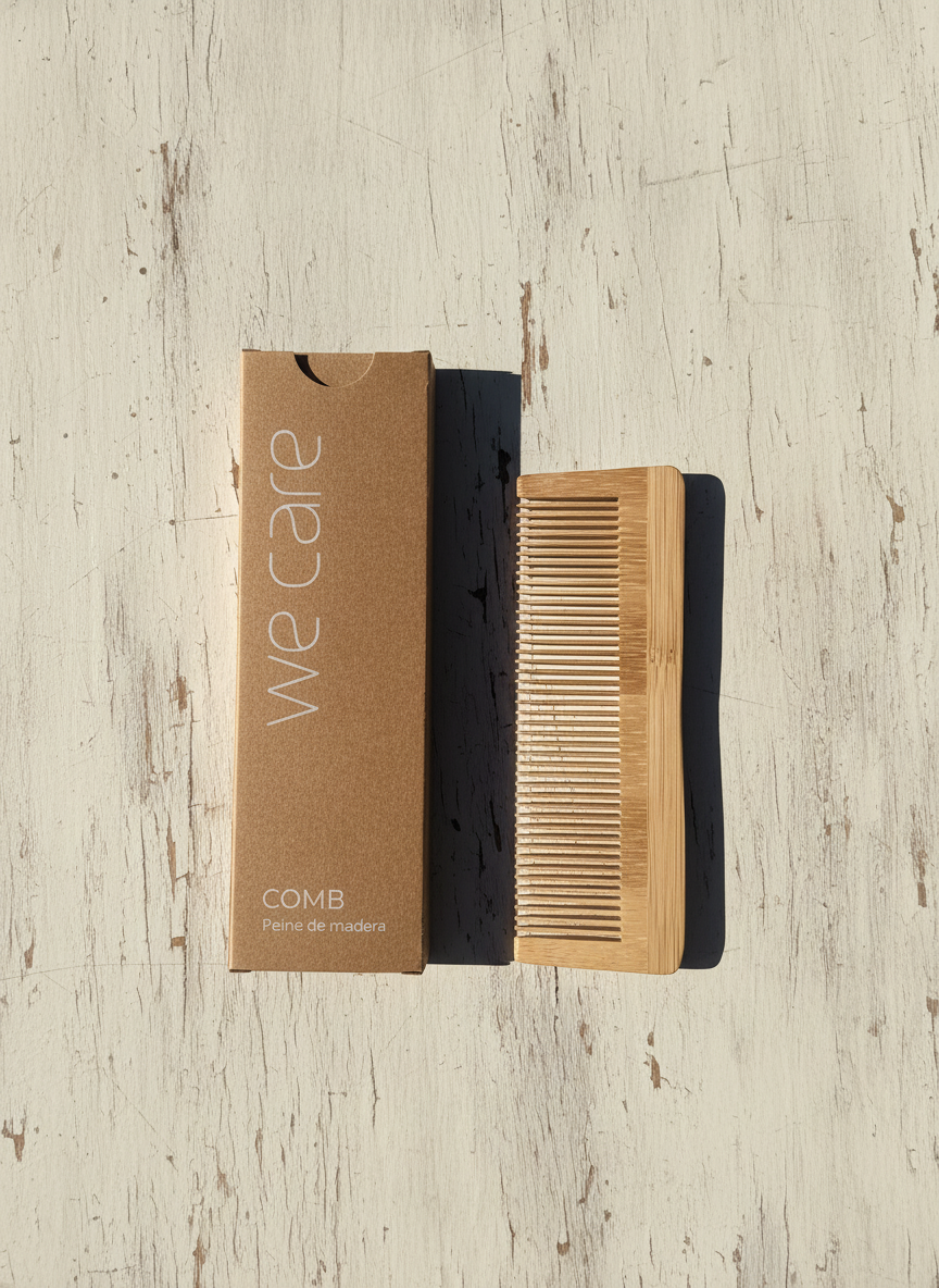 Este peine de madera está diseñado para cuidar tu cabello de forma suave, natural y respetuosa con el medio ambiente. Fabricado con madera 100% biodegradable y acabado artesanal, es ideal para desenredar sin tirones y sin causar electricidad estática.
